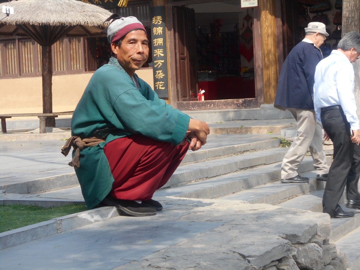 Ancient cobble stones are so slippery. Taking pity, several Chinese, young and elderly men and women, took turns holding my arms as we climbed up and down dozens of stairs to see the UNESCO Heritage List, Grottoes. Well worth the outdoor shower and sliding along the stones.