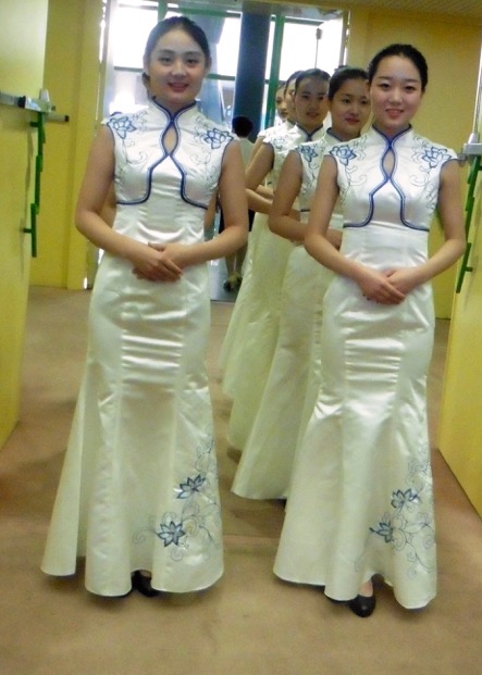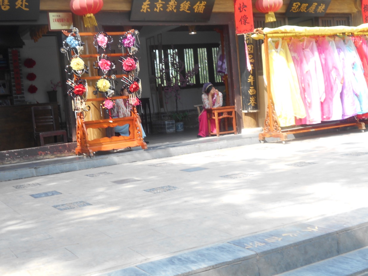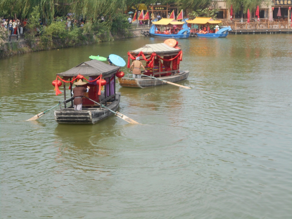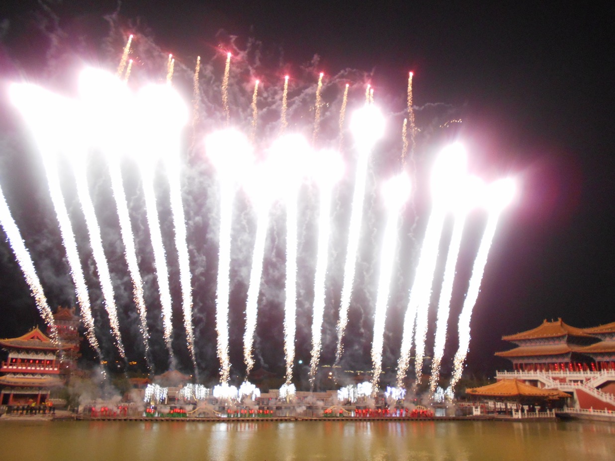 In the evening, when it gets dark, the water show (tickets are so very difficult to obtain) on the lake is created with high tech and audio and visual effects. After a welcome dinner hosted by Kaifeng Municipal Tourism Committee, this was one of the finest performances on the itinerary’s ‘menu’. “Dreamlike Glory of the Song Dynasty” took place against a backdrop of mountains. From the start when a a large red lotus flower opened to display several actors, it just went to grander scenes. Even Las Vegas can’t compare. It is a Chinese version of Le Cirque du Soliel on water, bridges ( Le Cirque’s, Eau?), castles, singing, lovely costumes, all with various coloured lighting, brilliant costumes, wonderful voices and yes,the mountain back drop. Splendid