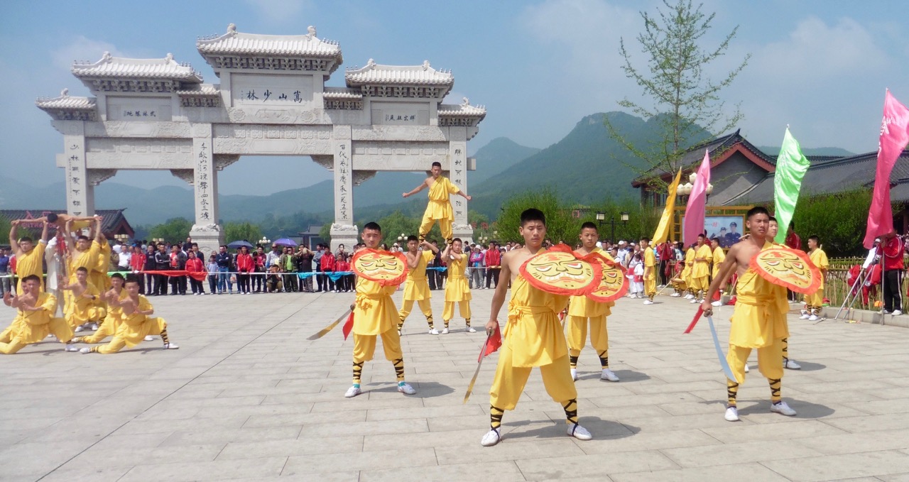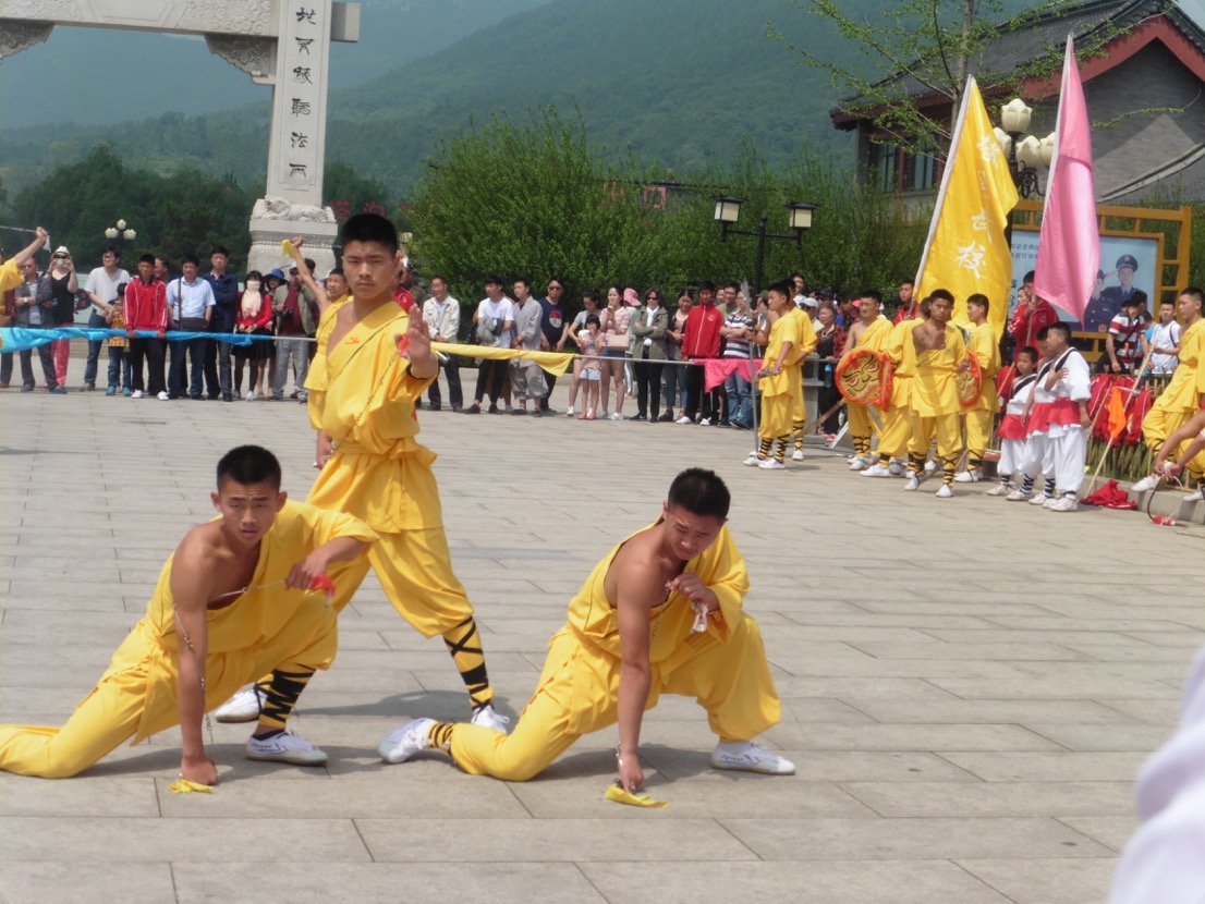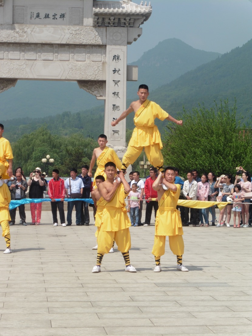 @Shaolin Temple, ‘the number one temple under Heaven’,is an UNESCO Cultural & Natural Heritage site. Famous for Chinese Zen Buddhism, it is know especially for martial arts. From the huge granite gated entrance, stairs lead to other stairs where you’ll find more halls, temples and pagodas. Originally built in 495 AD, it has become known as the best Chinese Martial Arts academy in China. On several hundreds of acres, there a still more building rising to the sky to accommodate transient monks and visitors who want to stay, see and learn more. There are amazing demonstrations of marital arts from young lads to more senior men. There are 400 classes and courses for students the thousands of young people who hope to be accepted. With so much to see, don’t miss the @Pagoda Forest, where distinguished dignitaries are buried.The numerous pagodas, about 15 metres (49 feet) high, made me feel very, very tiny and obviously very, very weak after seeing the older group perform amazing feats.
