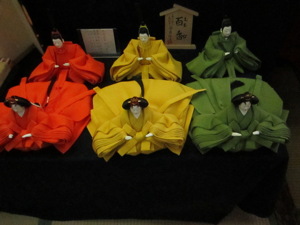 Since only the Emperor and royalty can have Hina dolls that wear the persimmon, there is a rainbow of colors and patterns to choose from.