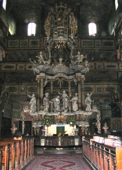 Expected by the Catholic donators of the land that this all-wood, timber frame building would never last very long through the difficult winters, it is now a great curiosity and a UNESCO listed world heritage site. However, I look around, and other than Renata, there is a lone man who is deep into reading a travel guide, never looking up to see the rich interiors with wondrous painted ornate hand made wood carvings which have been well looked after but with the assistance of outside finances. Because there are so few Evangelicals, about 120, maintenance was too costly for them to absorb the funding. Enter the Church Foundation Gustav Adolf, Federal Ministry for Search and Technology in Bonn, Federal Foundation of Environment Protection in Osnabruck and Foundation of Polish German Cooperation in Warsaw, each donated enough money to allow restoration. Concern about the framework, which was in a catastrophic state, was a priority. It would have been a colossal disgrace if this building hadn’t been saved.